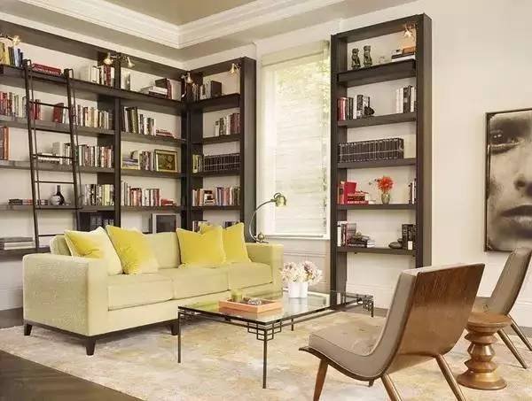 ▲利用高、瘦且直达天花板的书架,让你的目光不自觉向上延伸并产生高度的错觉。