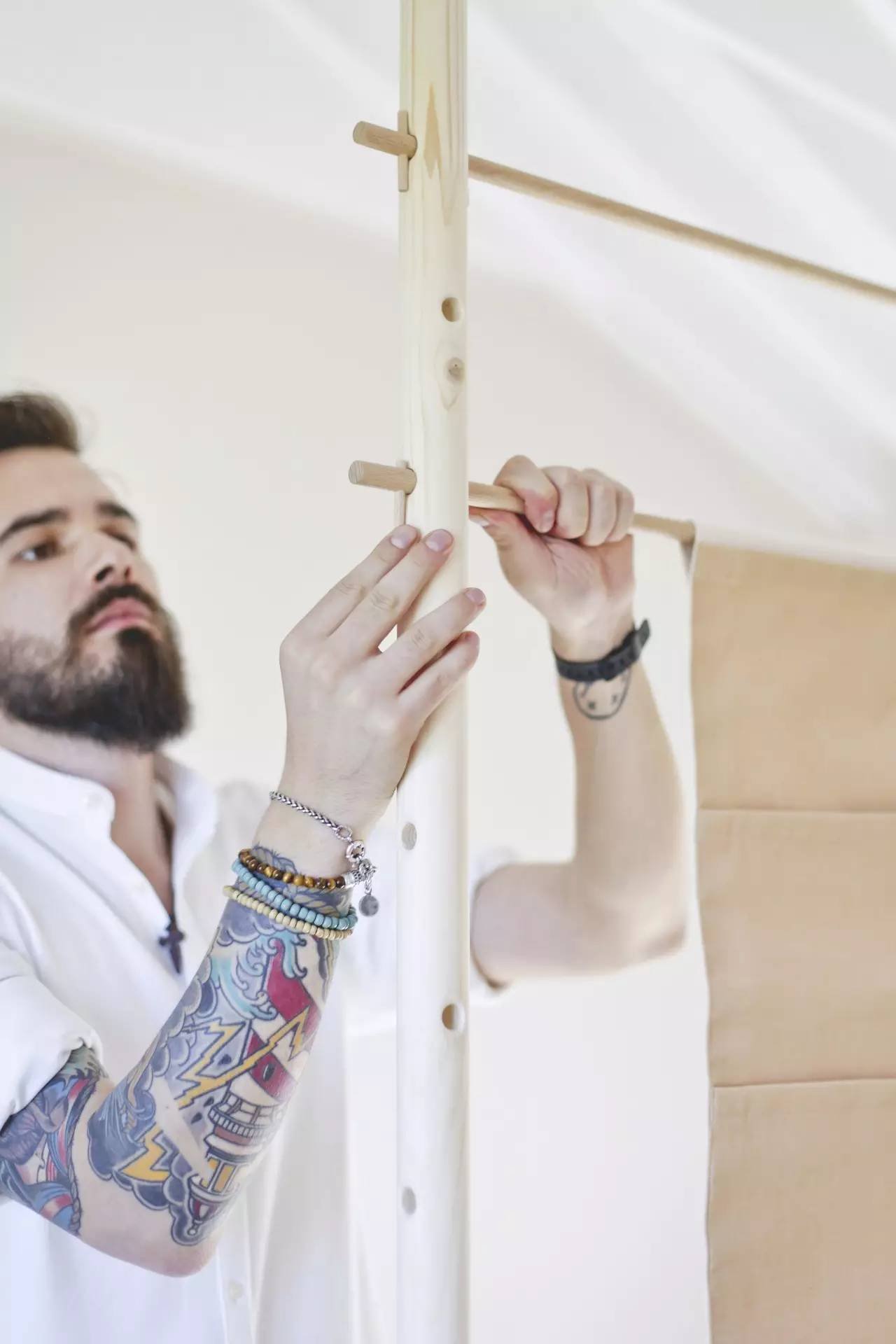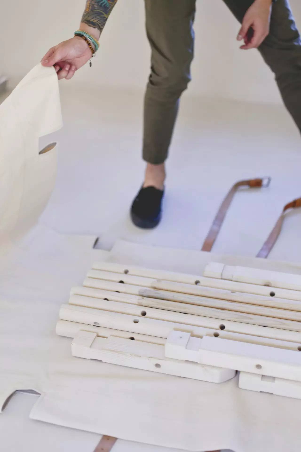 Itaca furniture来自意大利设计师 Elena Bompani 为租客和旅行者设计的一款模块化可组装的家具。它的木框架的材料是榉木,并配合有皮具的固定件以及麻布制收纳袋。