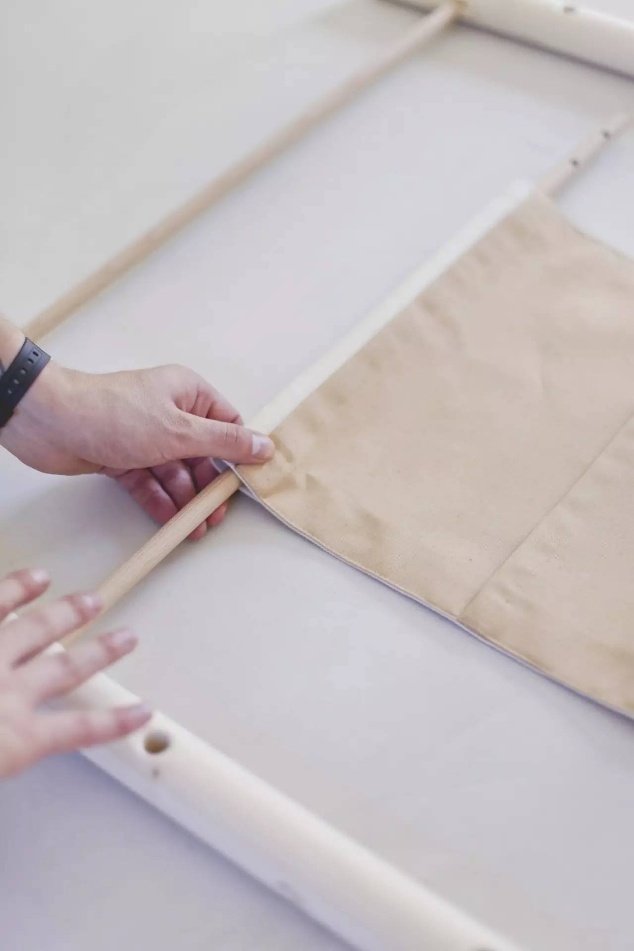 由于木框架上有多个间距相同地孔,使用者可以根据自己的需求调节高度或是增加部分功能。