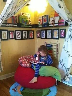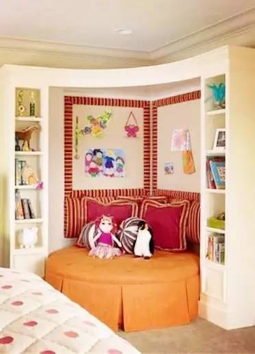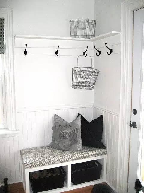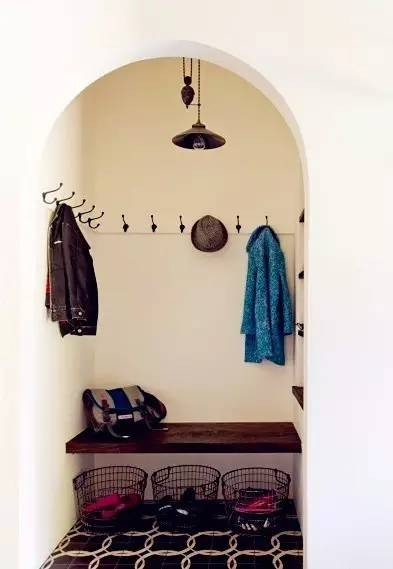 ▼在墙角用上圆柱鞋柜,再摆上几根衣架,收纳空间立马增大。别忘了也给孩子打造个娱乐休闲空间。