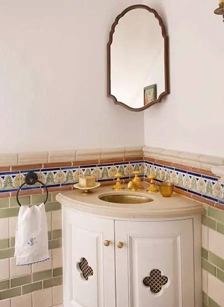 ▼卫浴柜将空间节约得更极致,梳妆镜悬挂得巧妙有趣。