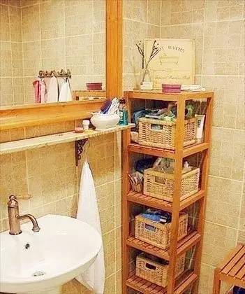 ▼墙角放个洗漱架,取用方便,美观大方。